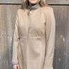hellgraue Tunika aus leichter Baumwollqualität mit dreifarbigem Ripsband abgesetzt und Goldband am Ausschnitt gepaspelt